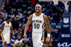 在上半场的比赛中,鹈鹕球员布鲁斯-布朗状态火热,他首发出战了16分27秒,7投5中,三分3中2、罚球2中2,得到14分2篮板2抢断1盖帽。